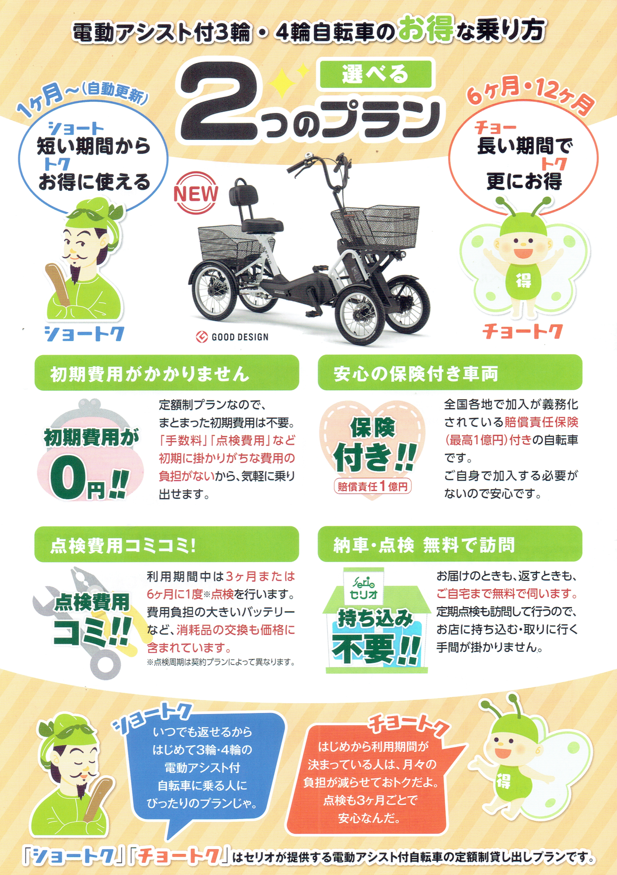 電動カート 中古やリースもあるようです。いかがですか 株式会社セリオからカタログを頂きました。